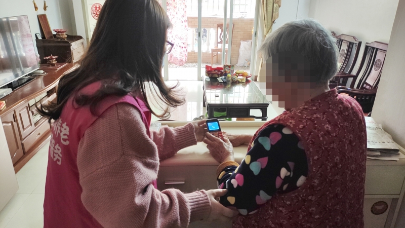 甘伯的子女表示:“祖庙街道能推出这项服务,真是太好了!它让我们这些平时不和父母一起居住的子女更加放心。”为甘伯安装“平安钟”,源自一次意外的触发。两年前的一个冬夜,甘伯不慎在家中滑倒。当时家中无其他人,他挣扎了很久才勉强爬起。这次经历让甘伯家人后怕不已,刚好看到了关于“平安钟”的宣传报道,便在社区的推荐和协助下,为甘伯安装了“平安钟”。